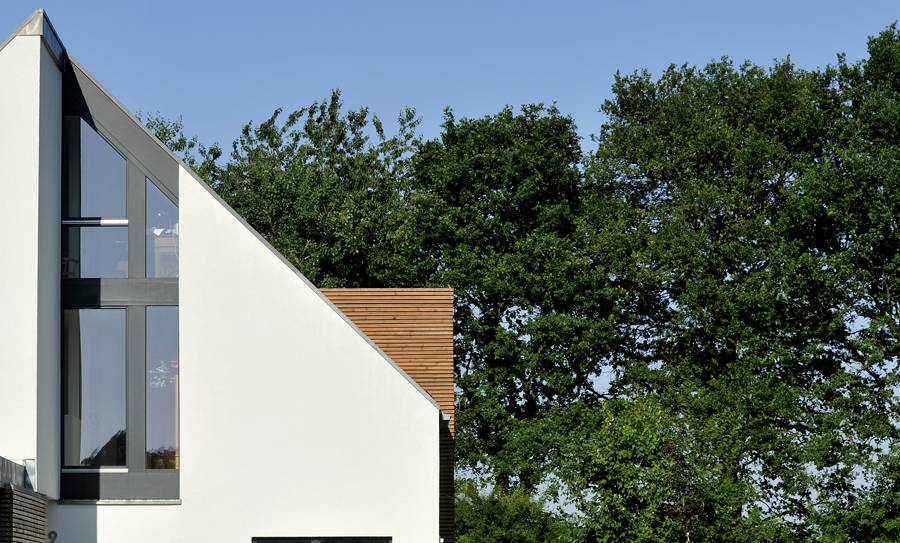 Auf dem Randgrundstück eines typisch fürs Münsterland von Klinkerbauten dominierten Neubaugebiets entstand dieser etwas andere Solitär.