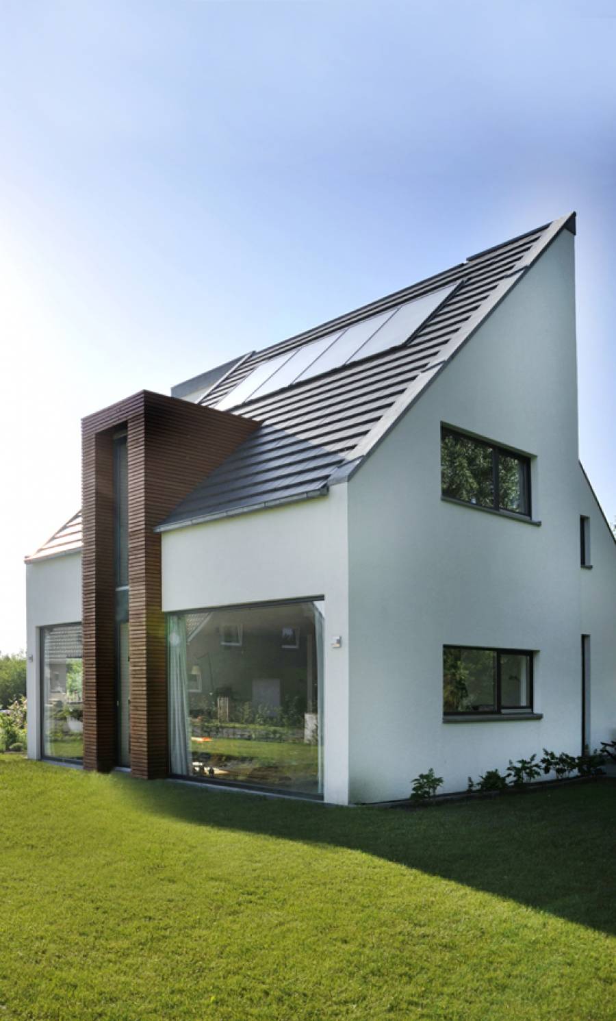 Das mögliche Eigenleistungspotential bei den Ausbaugewerken ermöglichte dem Bauherrn die Realisierung dieses mit Solarthermie und Lüftungsanlage ausgestatteten, architektonisch ambitionierten Projekts.