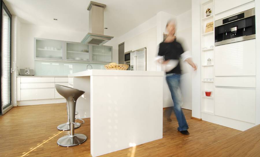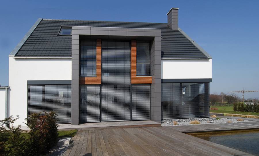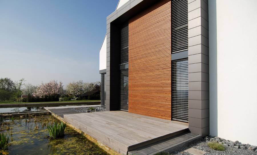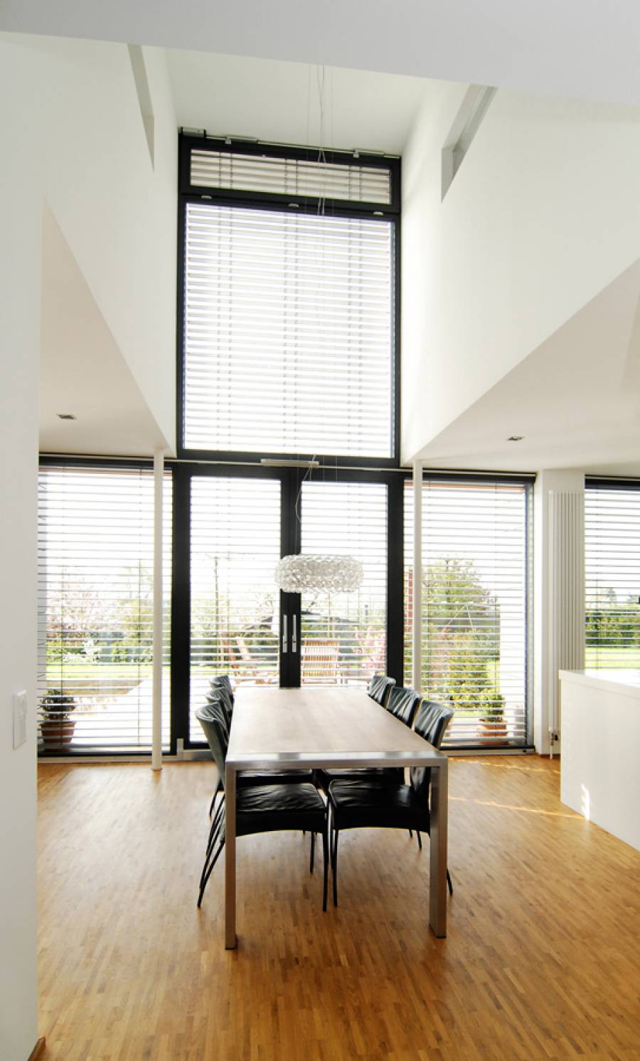 Für eine 4-köpfige Familie entstand dieses Holzrahmenbau-Haus. Es liegt auf einem Südhang-Grundstück eines klassischen Neubaugebietes zwischen Bielefeld und Herford. Besonderheiten des Ortes waren neben der optimalen Besonnung des Grundstücks die sehr reizvolle Fernsicht über Teutoburger Wald und Ravensberger Hügelland.